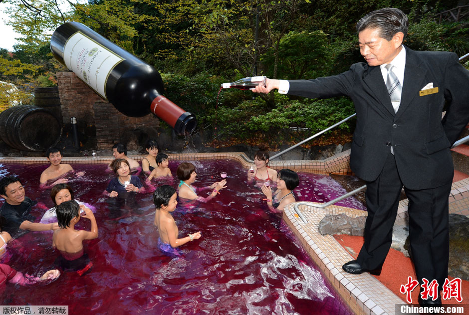 当地时间11月15日,日本本州岛东南部城镇箱根SPA胜地,年度红酒SPA盛会开幕。据悉,年度红酒SPA盛会为期16天,盛会将全部使用博若莱新酒。