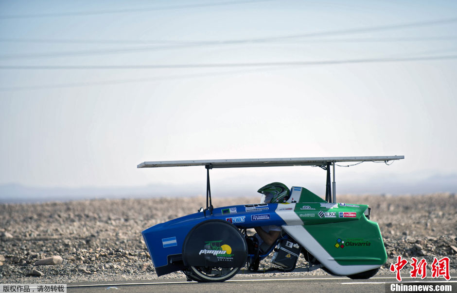当地时间11月15日,智利卡拉马举办太阳能汽车比赛。