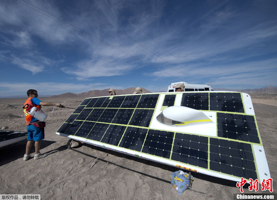 当地时间11月15日,智利卡拉马举办太阳能汽车比赛。