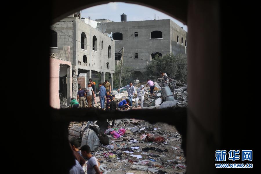 11月17日,在加沙城北部的杰巴利耶难民营,巴勒斯坦人查看遭到空袭的家园。根据加沙医疗部门的消息,以色列战机17日继续轰炸加沙地带多处目标,造成10名巴勒斯坦人死亡。截至目前已有40名巴勒斯坦人在以军空袭中丧生,另有超过350人受伤。新华社发(纳赛尔摄) 图片来源:新华网