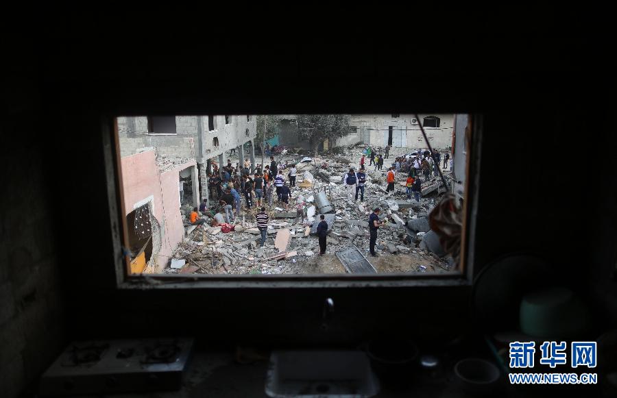 11月17日,在加沙城北部的杰巴利耶难民营,巴勒斯坦人聚集在空袭后的废墟中。根据加沙医疗部门的消息,以色列战机17日继续轰炸加沙地带多处目标,造成10名巴勒斯坦人死亡。截至目前已有40名巴勒斯坦人在以军空袭中丧生,另有超过350人受伤。新华社发(纳赛尔摄) 图片来源:新华网