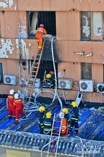 2012年11月19日,天津消防人员打破被封闭的窗户,准备进入建筑物内灭火。当日上午9时许,位于天津市地标性建筑天塔附近的东方贵族商务会馆发生火灾。接到报警后,天津消防迅速派遣消防人员和20余辆消防车辆参与灭火。截至中午12时左右,火情已得到控制,有1人在火灾中受伤。张超群 摄 图片来源:新华网