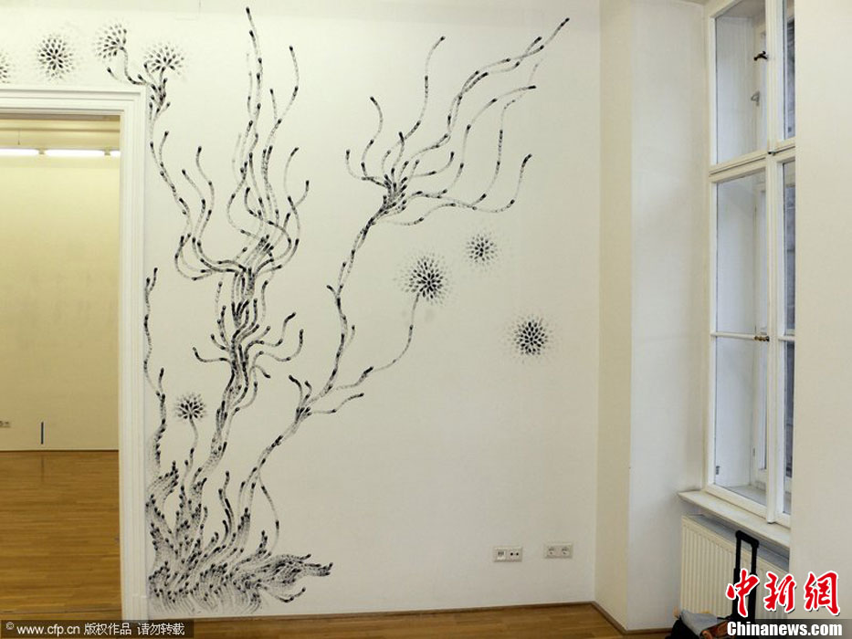 神奇的手指画艺术家Judith Ann Braun直接用手指沾着木炭或者石墨,在墙上或者画布上作画,其画作每一幅都是独一无二的。图片来源:CFP视觉中国
