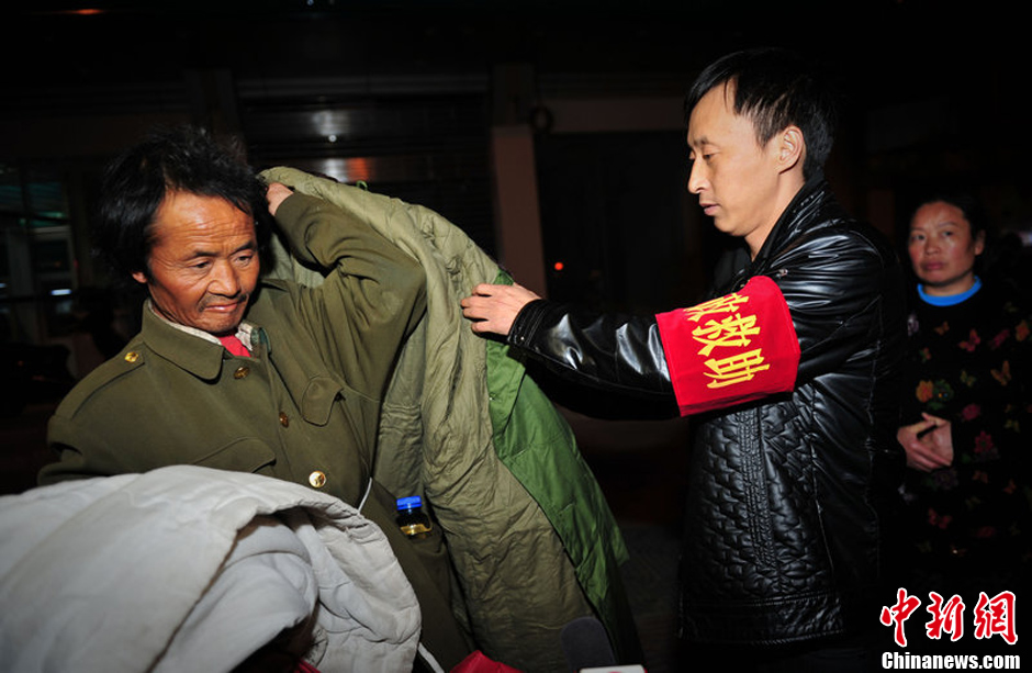 贵阳救助站上街搜救流浪者 现场发放棉衣被