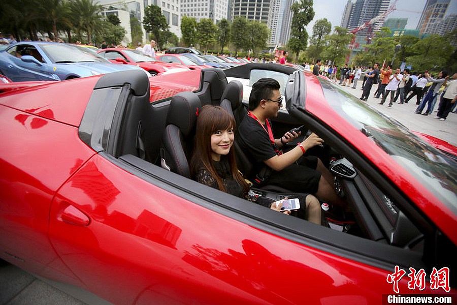 11月22日下午,一队由超过130辆不同年代的法拉利汽车组成的车队在广州闹市中举行巡游,这种“招摇过市”的活动,吸引了众多市民围观。图片来源:东方IC 版权作品 请勿转载