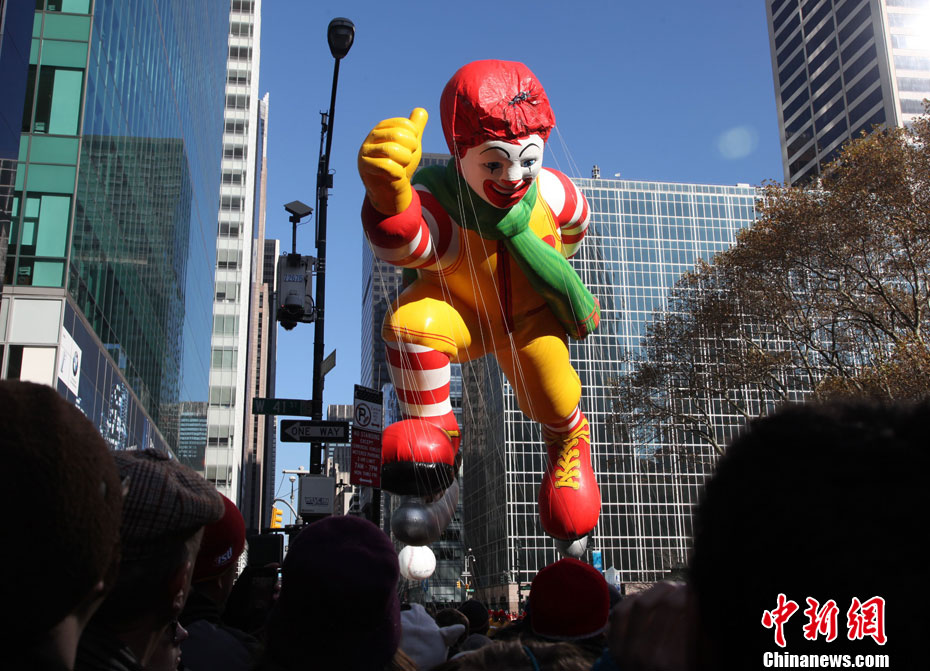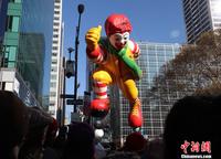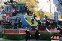 11月22日,美国著名百货公司梅西百货主办感恩节大游行,吸引了300万民众现场观看。今年的梅西感恩节大游行共有28个花车、40个大型气球,1600名啦啦队员和舞者,以及900名小丑和11个游行乐队参加。据悉,梅西感恩节的游行队伍长达2.5英里,大约5000万人收看了电视转播的梅西感恩节游行。该活动始于1924年,于每年感恩节(11月的第四个星期四)当天举行。中新社发 阮煜琳 摄