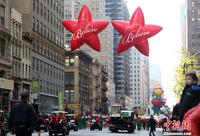 纽约举行梅西感恩节大游行 巨型玩偶吸引眼球