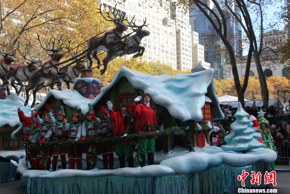11月22日,美国著名百货公司梅西百货主办感恩节大游行,吸引了300万民众现场观看。今年的梅西感恩节大游行共有28个花车、40个大型气球,1600名啦啦队员和舞者,以及900名小丑和11个游行乐队参加。据悉,梅西感恩节的游行队伍长达2.5英里,大约5000万人收看了电视转播的梅西感恩节游行。该活动始于1924年,于每年感恩节(11月的第四个星期四)当天举行。中新社发 阮煜琳 摄