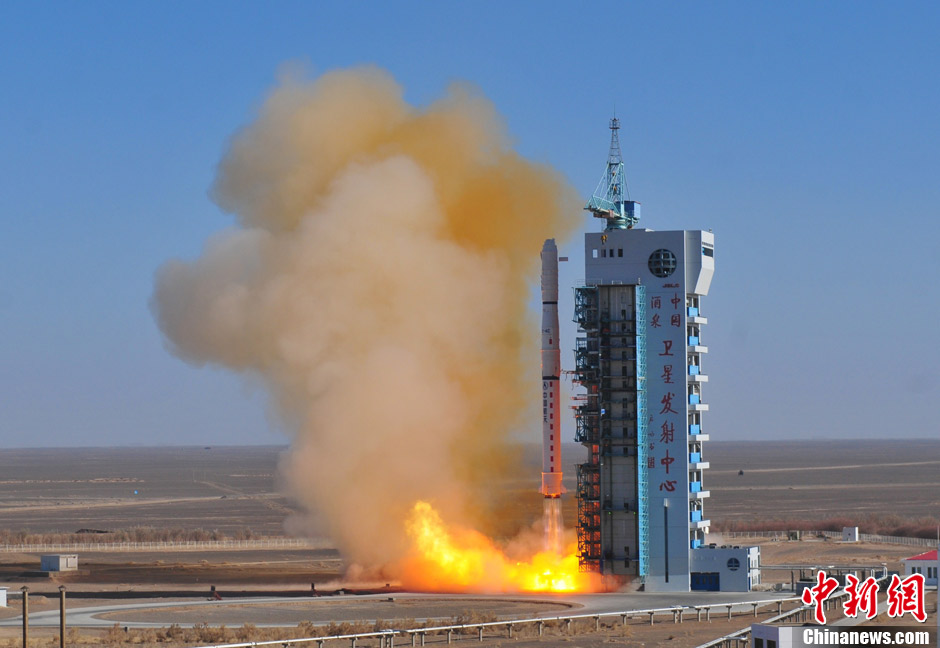 11月25日12时06分,中国在酒泉卫星发射中心用“长征四号丙”运载火箭,成功将“遥感卫星十六号”发射升空并送入预定轨道,这是中国“长征”系列运载火箭第172次航天发射。中新社发 梁杰 摄