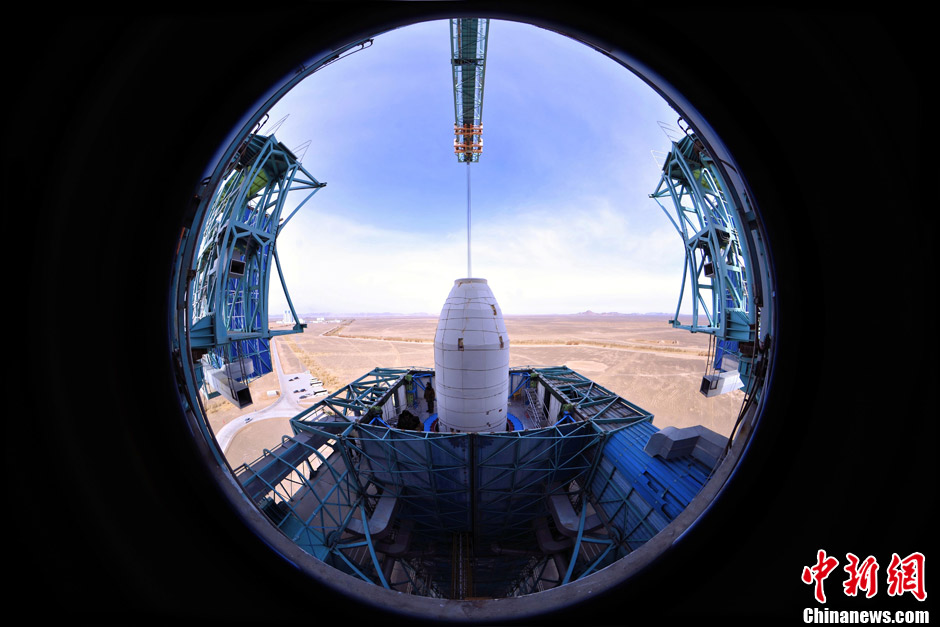 11月25日12时06分,中国在酒泉卫星发射中心用“长征四号丙”运载火箭,成功将“遥感卫星十六号”发射升空并送入预定轨道,这是中国“长征”系列运载火箭第172次航天发射。图为发射前夕,星箭对接完毕,发射塔架工作平台缓缓合拢。中新社发 梁杰 摄
