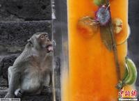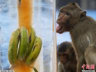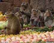 泰国“猴子自助餐节” 4吨食品宴请“馋猴”