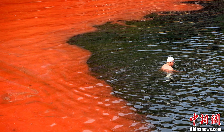 当地时间11月27日,澳大利亚悉尼Clovelly海滩,海中红藻泛滥,部分海滩已经向有人关闭。图片来源:东方IC 版权作品 请勿转载