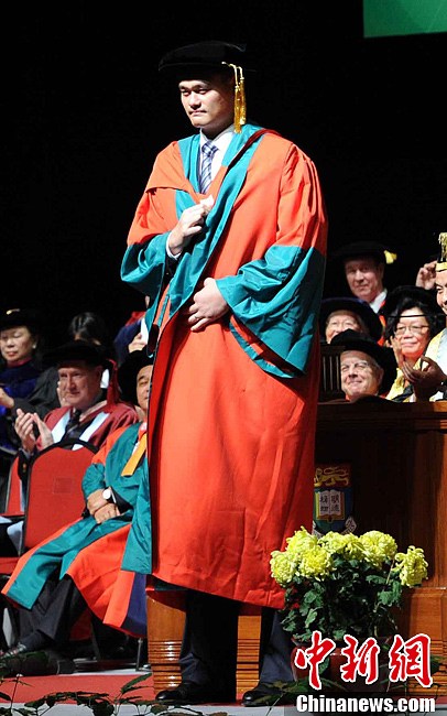 11月27日,中国篮球健将姚明荣获香港大学颁授名誉社会科学博士学位。中新社发 谭达明 摄