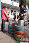 河北省武安市康二城镇中心小学师生们用废纸箱、旧轮胎、旧挂历、酒盒、硬纸板等经过精心设计,变成了一件件创意新颖、式样独特的牌匾,一幅幅精美绝伦的图画,一条条饱含哲理的标语,以及班级名片、门牌号、储物盒、挂钩等班级装饰品,上千件“另类作品”遍及校园各个角落。图为武安市康二城镇中心小学学生们在自己的作品“奥运五环”下跑过。马继前 摄