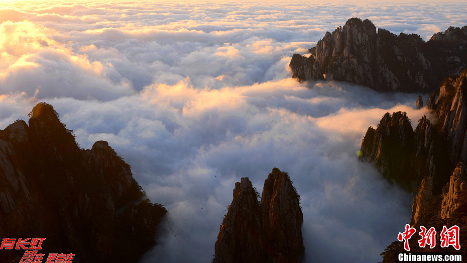 12月2日,安徽黄山风景区的云海美景。当日,安徽黄山风景区雨后放晴,出现了罕见迷人的壮观云海,吸引众多中外游客欣赏观光。中新社发 张启飞 摄 图片来源:CNSPHOTO