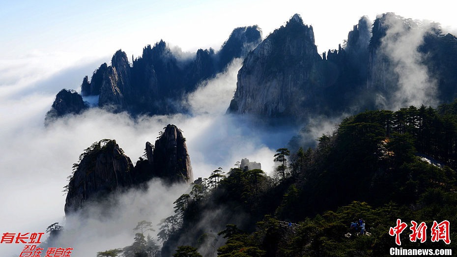 12月2日,安徽黄山风景区的云海美景。当日,安徽黄山风景区雨后放晴,出现了罕见迷人的壮观云海,吸引众多中外游客欣赏观光。中新社发 张启飞 摄 图片来源:CNSPHOTO
