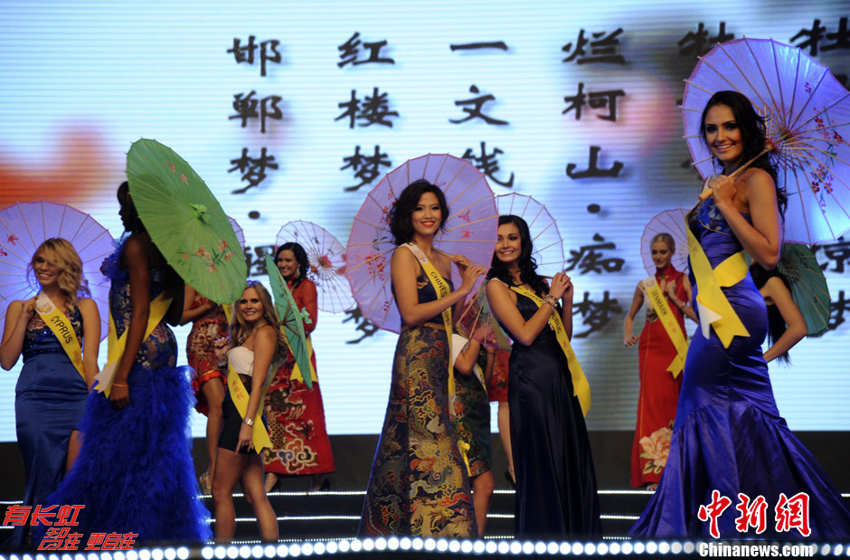 第18届世界旅游小姐全球总决赛近日在南京举行,来自49个国家和地区的佳丽云集争夺冠、亚、季军的荣誉。通过民族服装展示、南京云锦展示、泳装以及晚装展示,最后,立陶宛的选手摘得本次大赛的冠军,亚军被韩国选手摘得,而中国选手则获得了季军的荣誉。中新社发 钟欣 摄