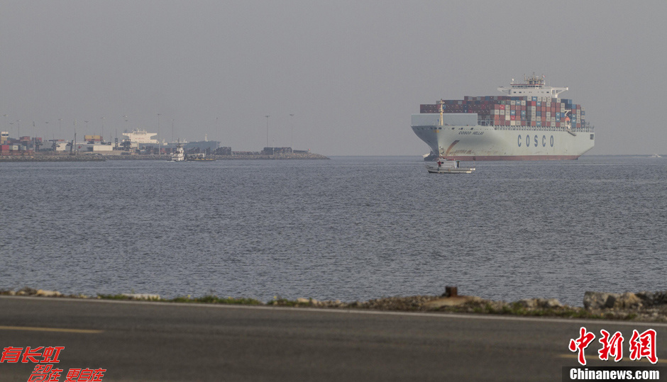当地時间12月4日,美国加利福尼亚州洛杉矶港,满载货柜箱的中远集团“希腊”号货轮无法进入港口。在洛杉矶港发生2002年以来最大规模罢工。罢工由代表800名文职人员的国际海岸和仓库工会于上周二发起,抗议对象是洛杉矶/长滩港口雇主协会。有一万名码头工人和其他工会组织成员拒绝跨越罢工文职人员所设的纠察线去上班,造成全美最繁忙的货运港口近乎瘫痪。洛杉矶-长滩两个港口的14个集装箱码头中的10个被关闭。罢工造成的经济损失每天高达10亿美元,已经有11艘货船转道其他港口包括墨西哥。中新社发 林戈 摄