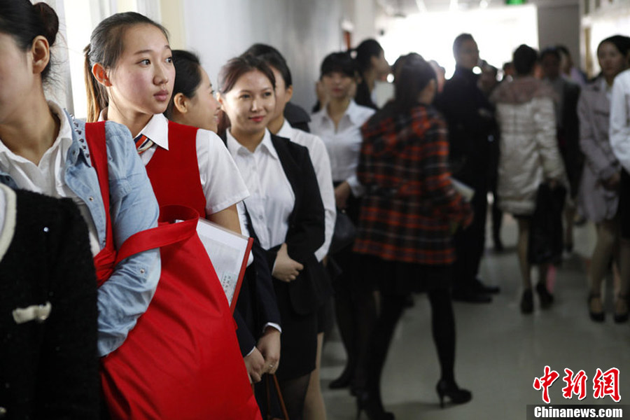 12月6日,深圳职业技术学院西校区,形象高雅靓丽的美女有序等候进入南航乘务员招聘现场。据悉南航此次招聘,承诺入职后正常参加飞行的乘务员,一年内收入可达6-8万元,1年后年收入可达15万元左右。图片来源:东方IC 版权作品 请勿转载