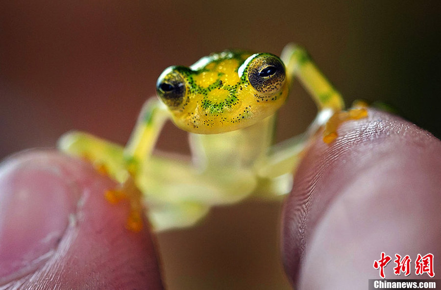 摄影师南美丛林中拍到罕见玻璃蛙 骨骼肝脏清晰可见