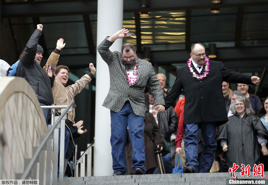 美华盛顿州同性婚姻合法首日 同性新人扎堆结婚