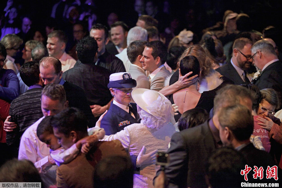 当地时间12月9日,美国华盛顿州西雅图,同性新人举行婚礼。当日是华盛顿州同性恋人可以合法结婚的第一天。
