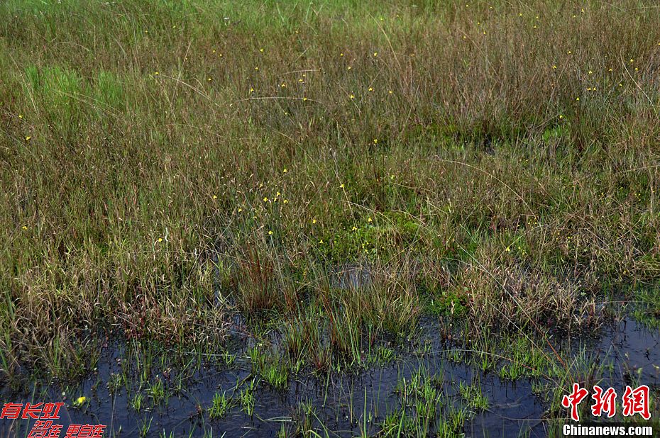 植物专家在贵州盘县八大山和纳雍珙桐保护区两地的沟谷沼泽湿地中首次发现了湿地植物标志种——黄谷精。本次发现的黄谷精分布地最低海拔1640m,大大降低了该种的分布下限。此次黄谷精的发现是贵州在1989年发现川苔草科Podostemaceae新分布后,时隔23年的又一个新分布科发现。图为黄谷精的生境。中新社发 杨成华 摄