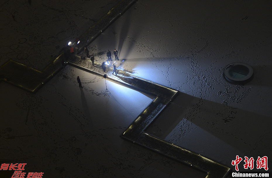 12月12日晚,北京当代MOMA建筑群内,几名时尚人士正在雪地上拍摄时装照片。当日,北京再次迎来大范围降雪,降雪覆盖北京全市大部。廖攀 摄