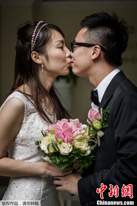 恰逢2012年12月12日,三“12”,世界各地迎来结婚高潮。图为当地时间12月12日,中国香港,一对新人在进行结婚登记后互相亲吻对方。