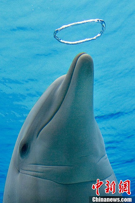 当地时间2012年12月11日报道,在意大利奥特罗摩水生动物公园有一群宽吻海豚,这些海豚会从它们的喷水孔中喷出气泡,然后像孩子一样,追着这些气泡玩数个小时而兴致不减。下面这些画面是奥特罗摩水生动物公园创建者斯坦扎尼拍摄的。斯坦扎尼说,海豚很聪明,无论是野生还是圈养,都能够自己制造玩具自娱自乐。图片来源:东方IC 版权作品 请勿转载