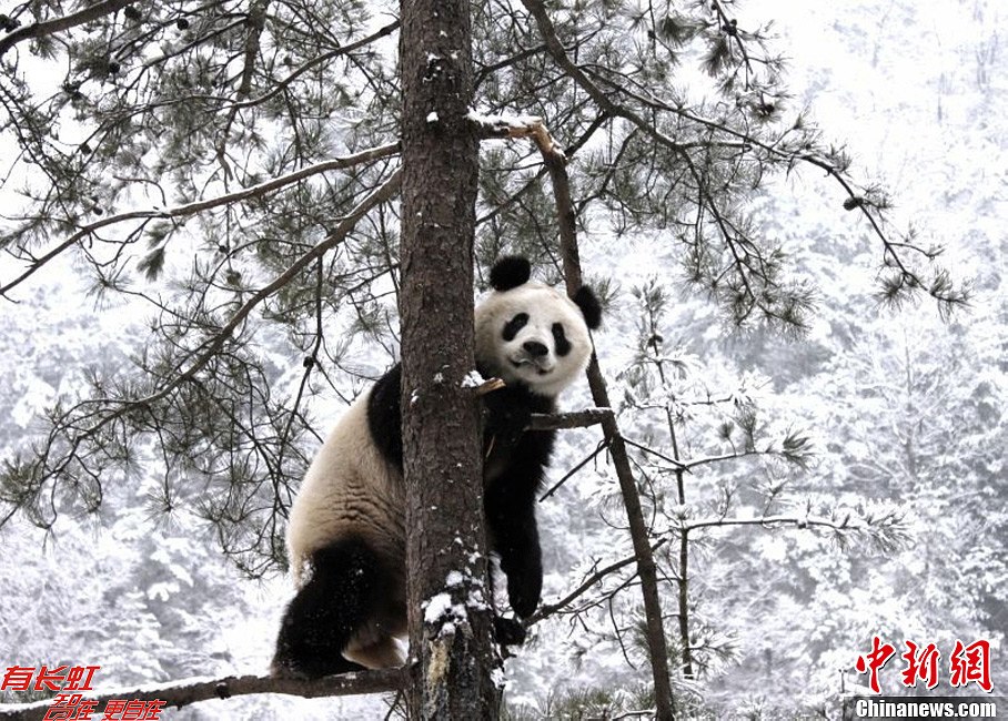 隆冬时节,寒气逼人,而秦岭大熊猫野化培训基地里的大熊猫似乎对此浑然不觉,秦岭是中国大熊猫的重要分布区,秦岭大熊猫作为一个独立的亚种,具有独特的生活环境和生活习性。该培训基地位于秦岭中段南坡的佛坪县,属秦岭大熊猫兴隆岭种群与天华山种群分布区的连接地带。1978年中国政府在当地建立了大熊猫国家级自然保护区,经过30多年的精心管护,保护区野生大熊猫数量呈逐年上升趋势,目前佛坪大熊猫有110—130只,保护区内平均1.5平方公里就有1只大熊猫,自然分布密度和野外可遇见率均居中国之首。图为上树难不倒“功夫熊猫”。蒲志勇 摄