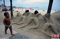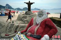 巴西里约持续高温 民众海滩消暑休闲