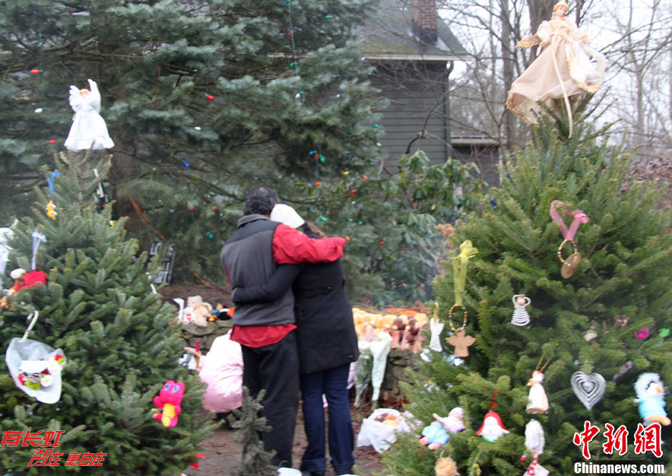 12月16日,美国康涅狄格为纽敦桑迪胡克小学枪击案遇害者展开大规模的悼念活动,一对男女悼念者在纽敦当地的追思现场相拥而泣。中新社发 李洋 摄