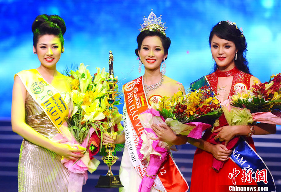 当地时间2012年8月25日,越南岘港,2012越南小姐选美比赛落幕,21岁的金融系学生邓秋草夺得冠军。图片来源:东方IC 版权作品 请勿转载