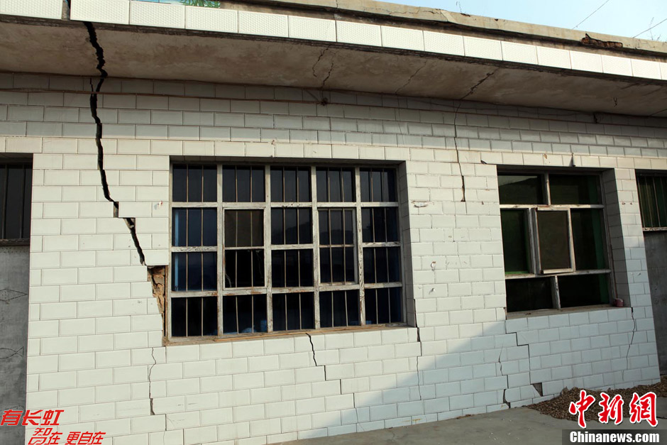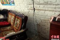 12月17日,记者赶赴当地进行了实地采访。在村民的带领下记者先来到了位于岳山坪村村口处的村民家里,进屋后李生珍指着过道上一条长长的裂缝对记者讲,像这样的裂缝在他家的每间房内都有,最近房子的裂缝不断增加,不时地墙上和屋顶会有大片泥皮往下掉,记者注意到受地基下沉影响屋内摆放的一个茶几明显斜到了一侧。