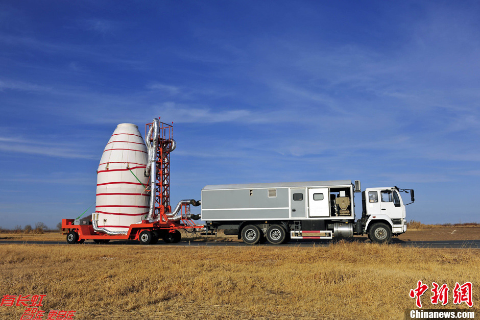 北京时间12月19日0时13分,中国在酒泉卫星发射中心用“长征二号丁”运载火箭,成功将土耳其GK-2地球观测卫星发射升空并送入预定轨道。至此,中国2012年度航天发射完美收官,航天发射任务实现“满堂红”。图为发射前夕卫星向发射场转运途中。中新社发 梁杰 摄