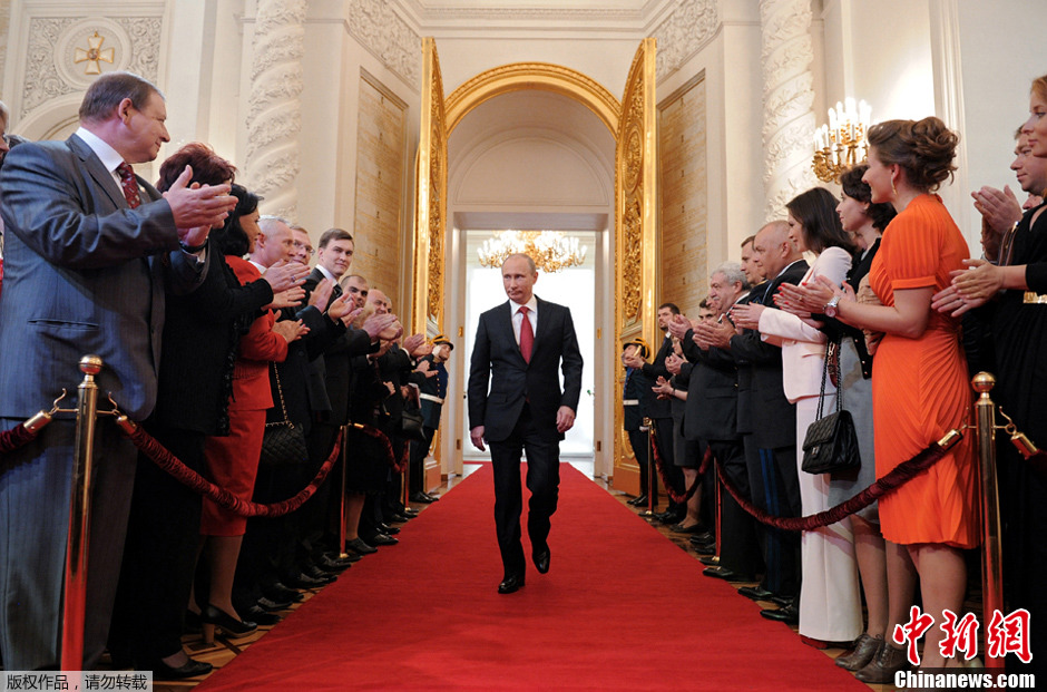 12年前,48岁的普京首次入主克里姆林宫。12年后,普京又回来了,60岁的他成功上演“王者归来”,含泪宣布赢得总统选举。普京也因此成为俄罗斯历史上第一位三次入主克里姆林宫的总统。图为2012年5月17日,俄罗斯莫斯科,俄罗斯总统普京步入克里姆林宫安德烈耶夫斯基大厅参加就职典礼。
