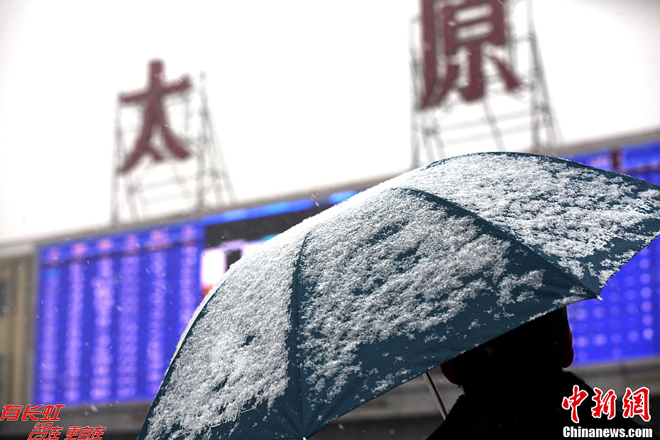 12月20日,山西太原气温降至零下9度,迎来强降雪。中央气象台12月20日06时继续发布寒潮蓝色预警,受强冷空气影响,预计12月20日08时至22日08时,西北地区大部、内蒙古、华北中北部、东北地区大部等地气温将先后下降6~8℃。图为山西太原火车站等待进站的市民。中新社发 郭泽源 摄