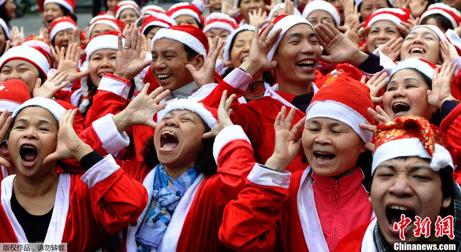 越南200“圣诞老人”齐练大笑瑜伽迎“双蛋”
