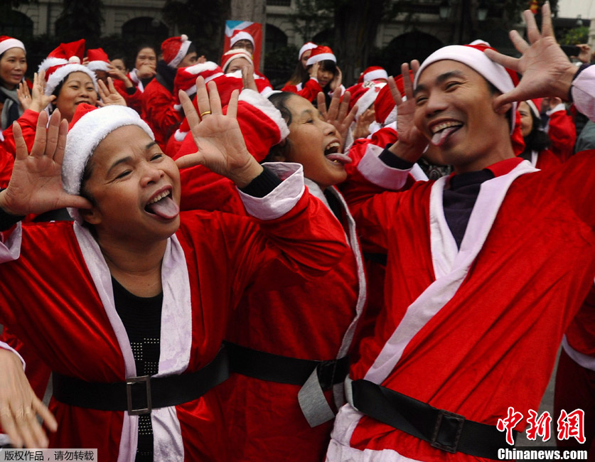越南200“圣诞老人”齐练大笑瑜伽迎“双蛋”