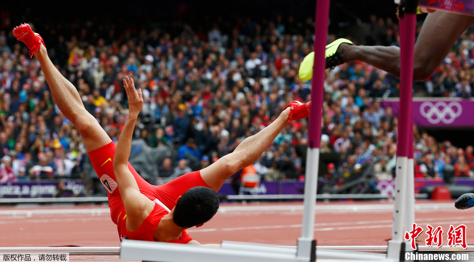 当地时间2012年8月7日,伦敦奥运会男子110米栏预赛,刘翔意外摔倒无缘半决赛。