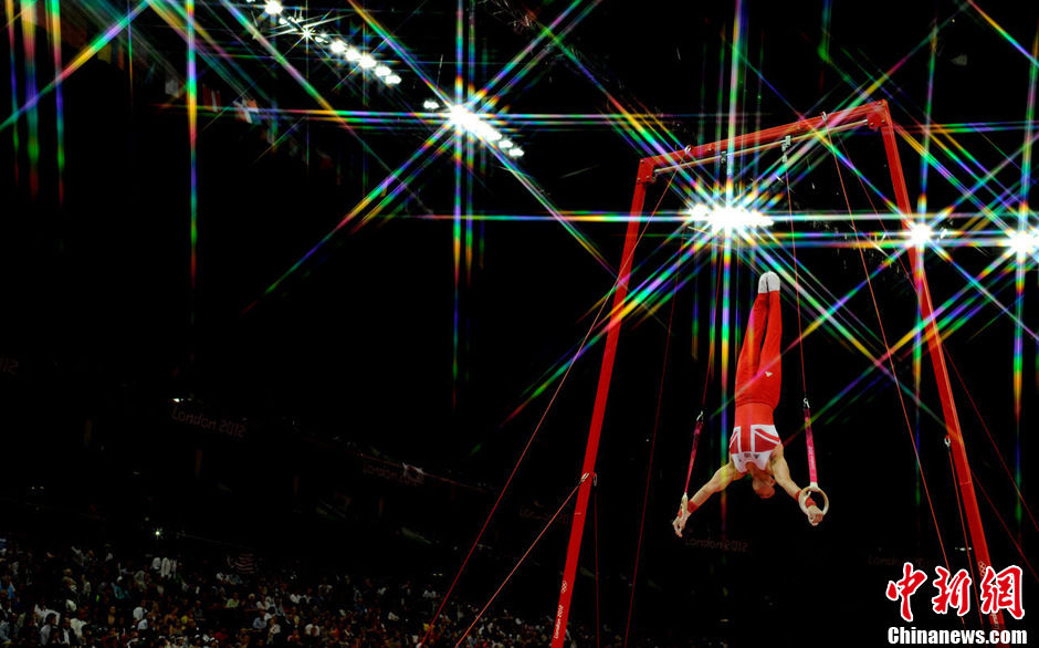 2012年7月30日,2012年伦敦奥运会男子体操团体决赛,英国选手在吊环比赛中。图片来源:Osports全体育图片社 版权作品 请勿转载