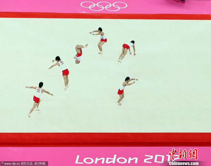 当地时间2012年7月28日,伦敦奥运会体操赛场上拍摄的多重曝光照片。图片来源:CFP视觉中国