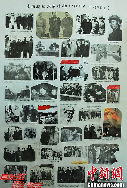 河北宽城满族自治县85岁的离休老党员翁一民,1994年开始收藏从报纸杂志上剪辑毛泽东在不同时期的老照片,目前已收藏500多张。翁一民称,这些照片将在毛泽东119周年诞辰时展览,让更多的年轻人了解中共党史,了解老一辈无产阶级革命家的丰功伟绩。图为翁一民收藏的全国解放战争时期(1945年8月——1949年9月)毛泽东照片。朱建军 摄