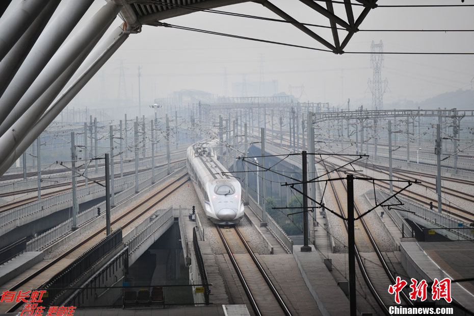 京广高铁正式开通运营 G72驶出广州南站