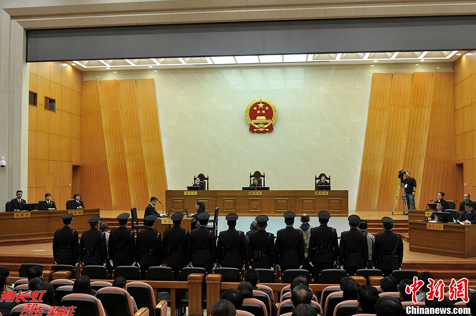 12月26日,云南省高级人民法院对湄公河中国船员遇害案进行二审宣判,驳回上诉,维持对糯康、桑康·乍萨、依莱、扎西卡的死刑判决,维持并核准对扎波死刑、缓期二年执行的判决,维持对扎拖波有期徒刑八年的判决。图为法庭宣判。中新社发 王艳龙 摄
