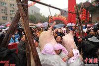 12月26日,重庆市江北区·五宝“年猪文化节”在五宝镇文化广场隆重拉开序幕。众多当地居民积极参与文艺表演、屠夫解猪比赛、年猪厨艺大赛、猜重称猪比赛等地方特色文化活动,享受节日的喜庆。陈超 摄