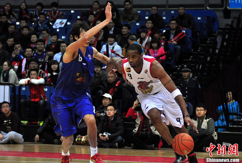 12月26日,2012-2013赛季CBA常规赛第十四轮比赛,青岛队在主场以106比97战胜江苏队,赢得赛季首场比赛胜利,麦蒂夺得24分。图为麦蒂在比赛中。图片来源:Osport全体育图片社