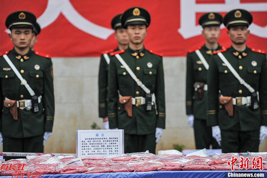 12月28日,广西壮族自治区公安厅以南宁为主会场,在14个市同时开展公开焚烧毒品活动,销毁由广西各级执法部门收缴的海洛因、麻古等各类毒品约2吨,以提高公众禁毒意识。据统计,广西公安机关三年来共破获毒品违法犯罪案件30220起,抓获毒品违法犯罪嫌疑人35405人,缴获各类毒品16.3吨。图为销毁现场展示的毒品。洪坚鹏 摄