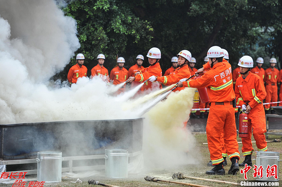 12月28日,广西壮族自治区公安厅以南宁为主会场,在14个市同时开展公开焚烧毒品活动,销毁由广西各级执法部门收缴的海洛因、麻古等各类毒品约2吨,以提高公众禁毒意识。据统计,广西公安机关三年来共破获毒品违法犯罪案件30220起,抓获毒品违法犯罪嫌疑人35405人,缴获各类毒品16.3吨。图为消防队员在毒品焚烧结束后扑灭余火。洪坚鹏 摄